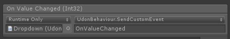 This object has a program called DropdownSync which works the same as the Toggle and Slider above. When someone changes the value, they make sure it's different than the current value, then become the owner and send the new value to everyone else.